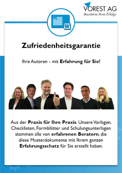 Anhand eines kompletten Prozessablaufes werden Ihnen die einzelnen Prozessphasen von einem internen Audit ISO 45001 im Arbeitsschutzmanagement dargestellt. Sie erfahren außerdem, welcher Beitrag bei jedem der einzelnen Prozessschritte zu leisten ist, damit Sie Ihr Audit Ziel erfolgreich meistern. Experten mit jahrelanger Erfahrung haben diese Prozessbeschreibung entwickelt, sie entspricht dabei den normspezifischen Anforderungen der ISO 45001. Sie können also sicher sein, dass die Prozessbeschreibung Internes Audit ISO 45001 Sie bestens auf die erfolgreiche Planung, Durchführung und anschließende Dokumentation eines internen Arbeitsschutzmanagement Audits vorbereitet.